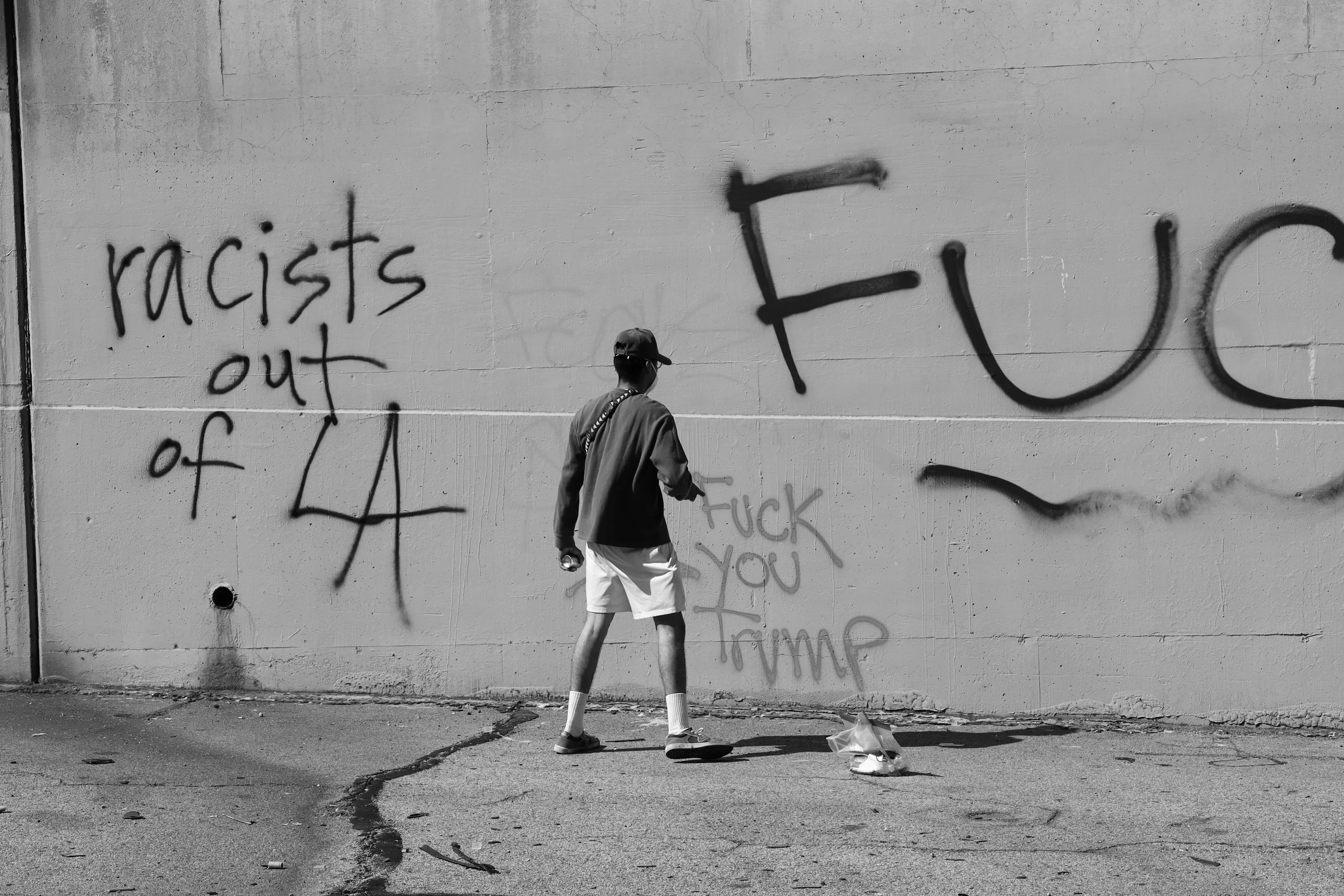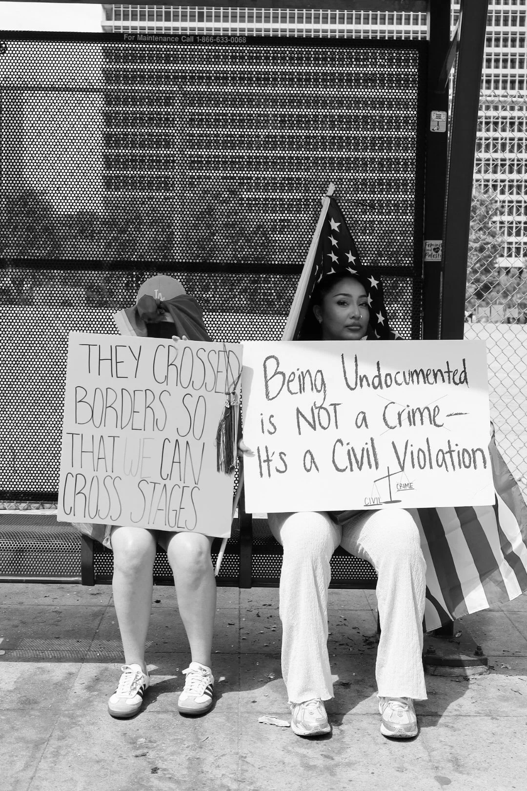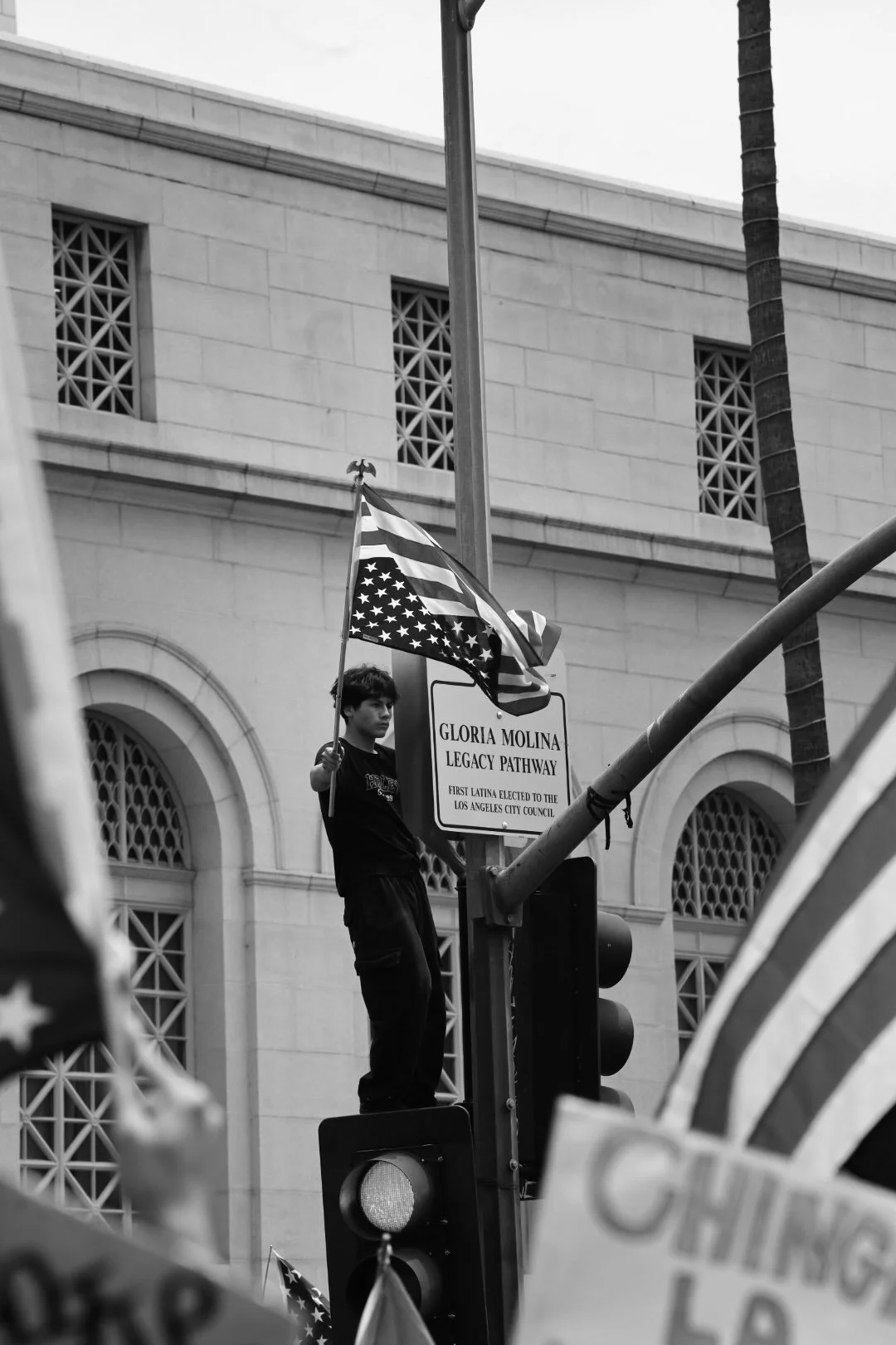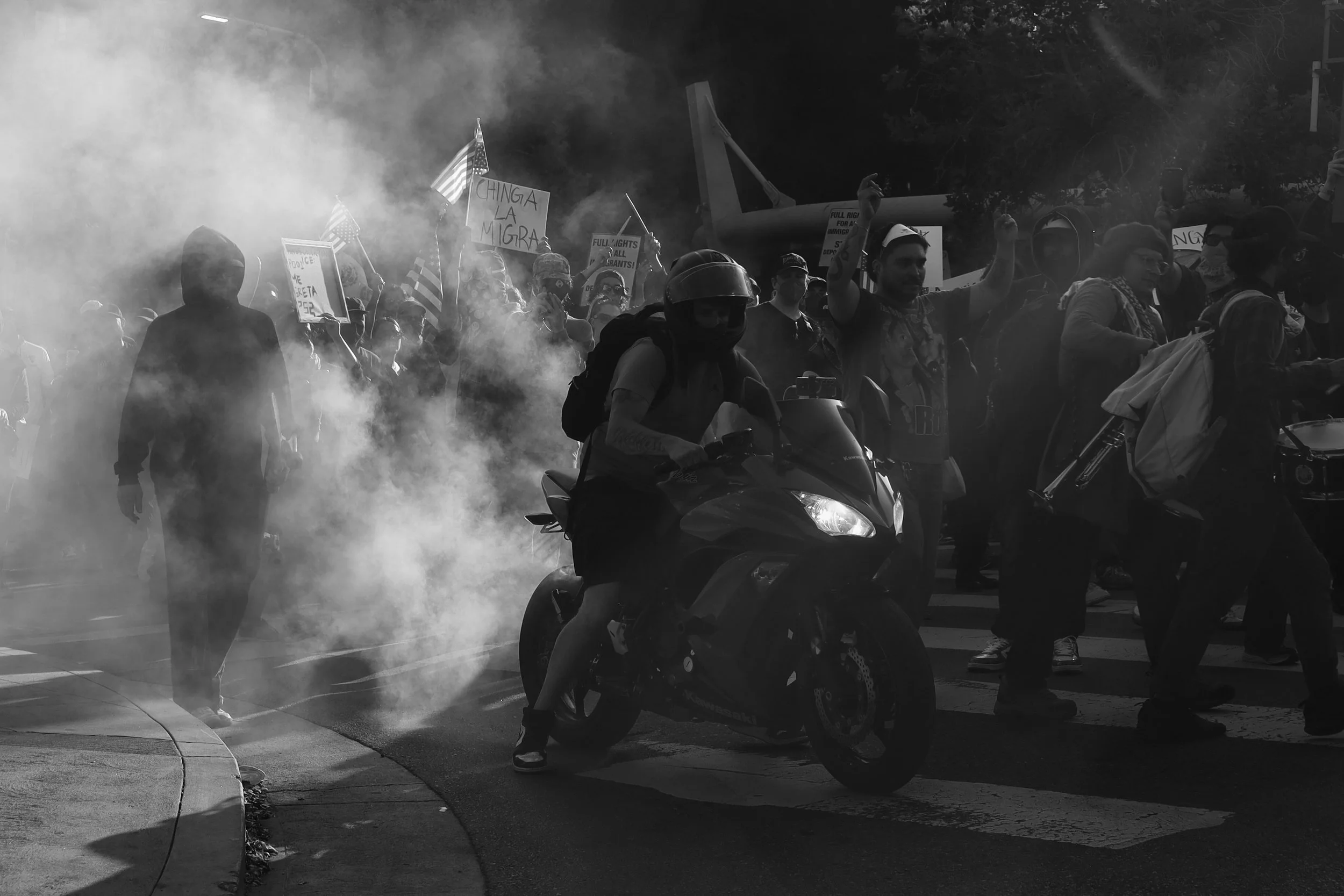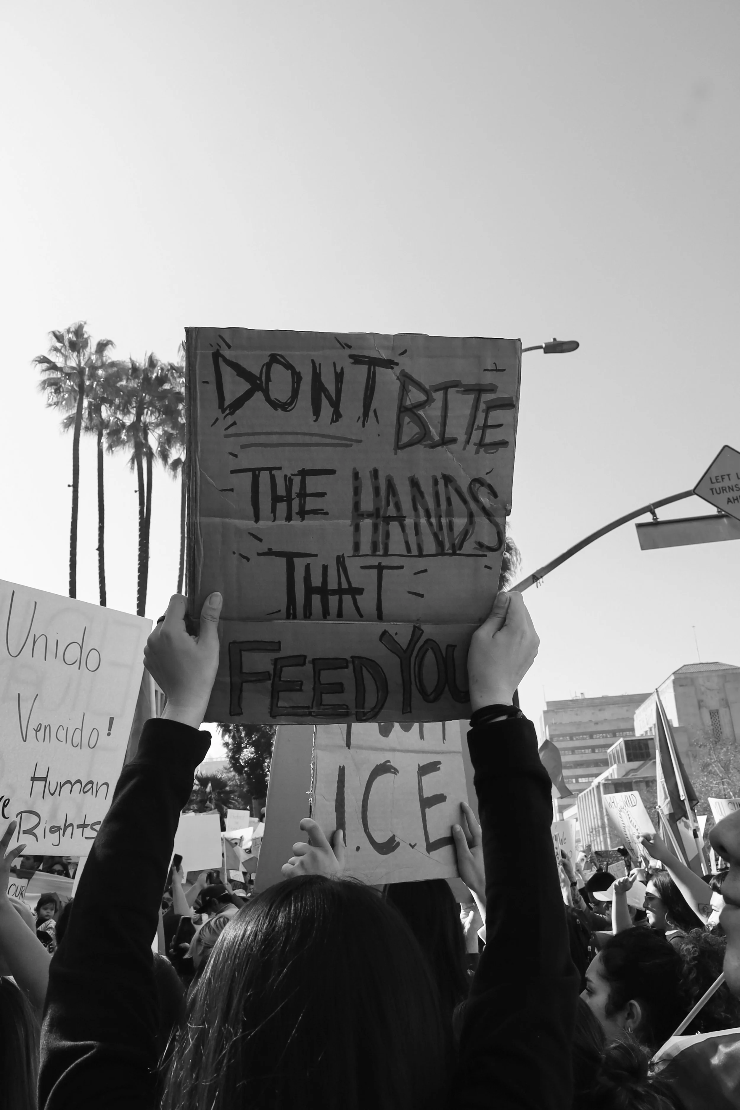 These photographs were taken throughout Los Angeles during the height of nationwide protests against the Trump administration’s anti-immigrant agenda. From freeway shutdowns to downtown marches, communities rose in collective resistance to denounce ICE raids, mass deportations, and the inhumane treatment of immigrants in detention.
